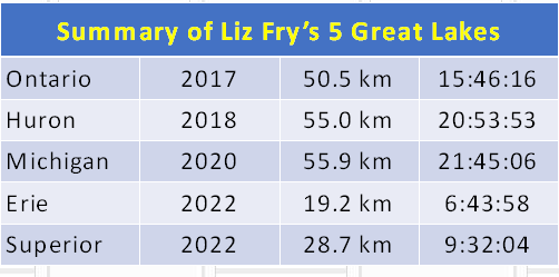 With her 2022 crossing of Lake Superior, Liz became the third person (ALL LADIES), and First American, to have made crossings on all 5 Great Lakes.
