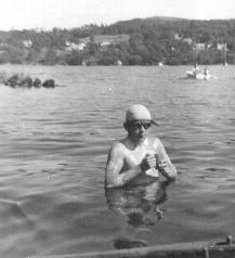 In 1964 at age 15, Kevin Murphy, completed his first long distance swim - 6 hours 29 minutes for the 10 miles of Lake Windermere. The photos above show him feeding at Belle Isle during that Windermere swim. In 1968, he completed his first Channel swim - England to France in 15:15. Also in 1968, he placed second to Barry Watson with a time of 14:38 in the Two-Way Windermere championship. At that time Barry held the France-England Channel record with a time of 9:35.