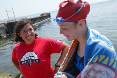 Faced with a sore throat and chills on the morning of this swim, Natalie and her Coach struggled with a decision