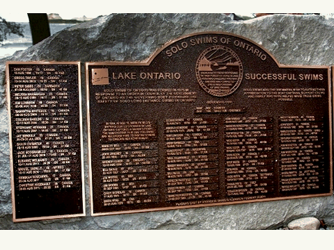 The original stone monument and plaque at NOTL were erected and unveiled on 29 October 1994 when the attendees included the first two conquerors - Marilyn Bell and John Jaremey. For the dedication of the new plaque, Marilyn was represented by Toronto reporter and historian Mike Filey who covered Marilyn's original crossing in 1954.