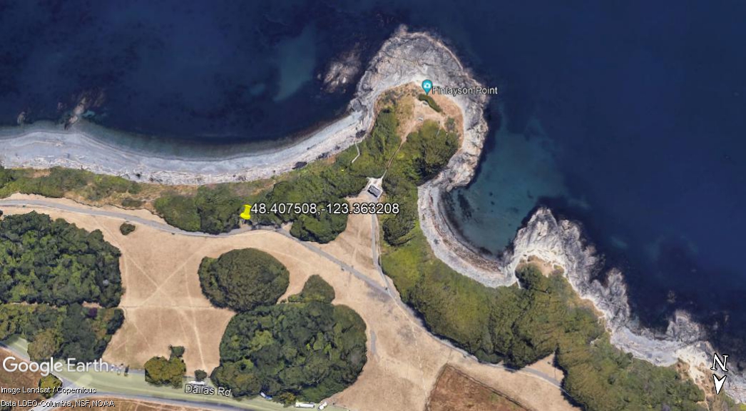 It is located close to Finlayson Point, on the Dallas Road Waterfront Trail in the park at: