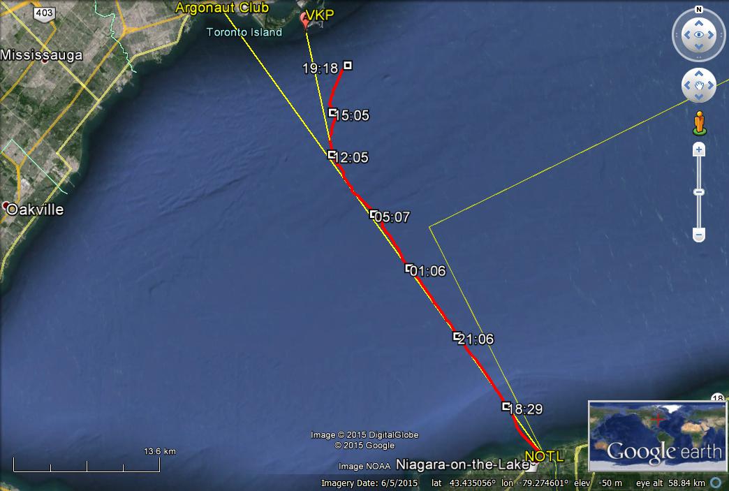 15-16 August 2015 5:03 pm, Saturday, 15th August 2015 26 hours 16 minutes Gazebo, Niagara on the Lake: 43.257876°N, 79.068301°W 7:19 pm, Sunday, 16th August 2015 ~5 km SE of Vicki Keith Point (Leslie Street Spit): 43.586060°N, 79.293790°W 40.8 km 44.3 km "D" Designates a Deaf Interpreter Colleen Shields Marilyn Korzekwa Marilyn Korzekwa Joey Bell (D) Christie Sharp (D) Annalee, Andrea Krause, Gloria Brifoglio Christie Sharp (D) R & R, twin-engine power boat. Christine Arsenault GAMRU, large rigid inflatable boat (RIB), Bob Gordon, Kyle Russell, Andrew Pattemore Sea Monk, 21-Foot RIB. Thomas Dobokay 15-Foot Mercury inflatable. Marilyn Korzekwa Josef Polcz, Matthew Brownell (D) Christine Arsenault, Colleen Shields, Joey Bell (D), Marilyn Korzekwa, Rebekah Boscariol, Trinity Arsenault Megan Lussier (D) John Ironside |