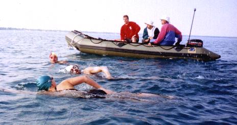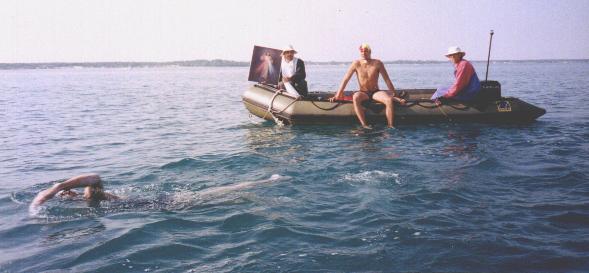 John's swim, as with many others, involved many hours of frustration in gathering together a team for his swim; however, the owner of one of his potential lead boats who had to back-out (because of personal commitments) supported John's charitable goals so strongly that he donated $1,000 to these charities.