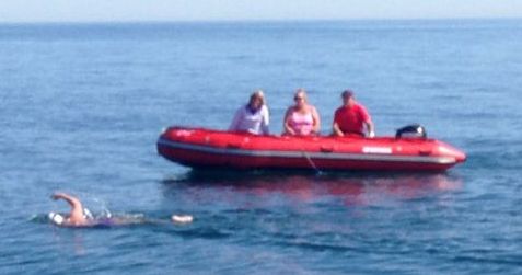 SOLO Swims: In general Liz insists on not needing a Support Swimmer (Pacer); however, the challenges of piloting and navigation on her Lake Michigan swim led to a highly experienced swimmer, Qing Li, helping her to keep course during three 45-60-minute periods in the evening hours.