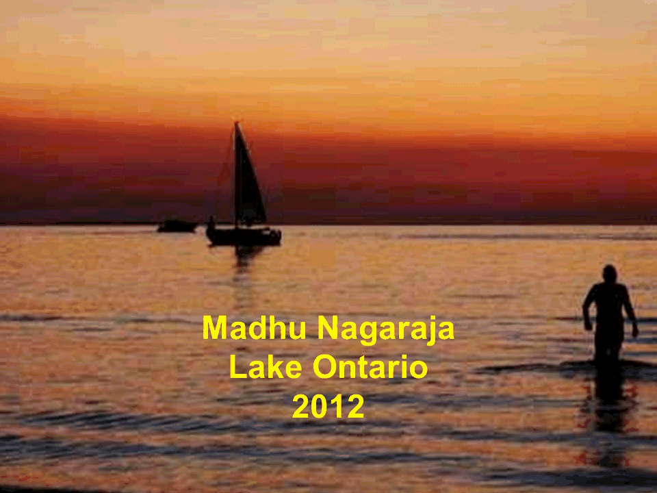 Here is a link to a more comprehensive write-up on Madhu's background and achievements. So it wasn't until 2012, at age 41, that Madhu got his team together for his 41.3 km Lake Ontario crossing from Port Dalhousie to Oakville. At the 21:08:11 hours start at Port Dalhousie, the weather was fine, but . . . within two hours it deteriorated and presented him with a tough 12 knot headwind for the next 11 hours. After a further two hours the wind had reversed; so for the final 10 hours of the swim Madhu had a tailwind of 12 knots. Shoreline northerly lake currents posed some problems; however, Madhu was determined to land at Coronation Park where a large crowd had gathered. So he persisted against the currents and landed at 21:34:14 hours on July 29, to complete the swim from entry-to-exit in a time of 24:26:03, which gave him the male record for this course and provided him with entry into the WOWSA 24-hour club. The night of the lake with Madhu's swim and team inspired a poem that tried to capture the wonder of the event. The Team