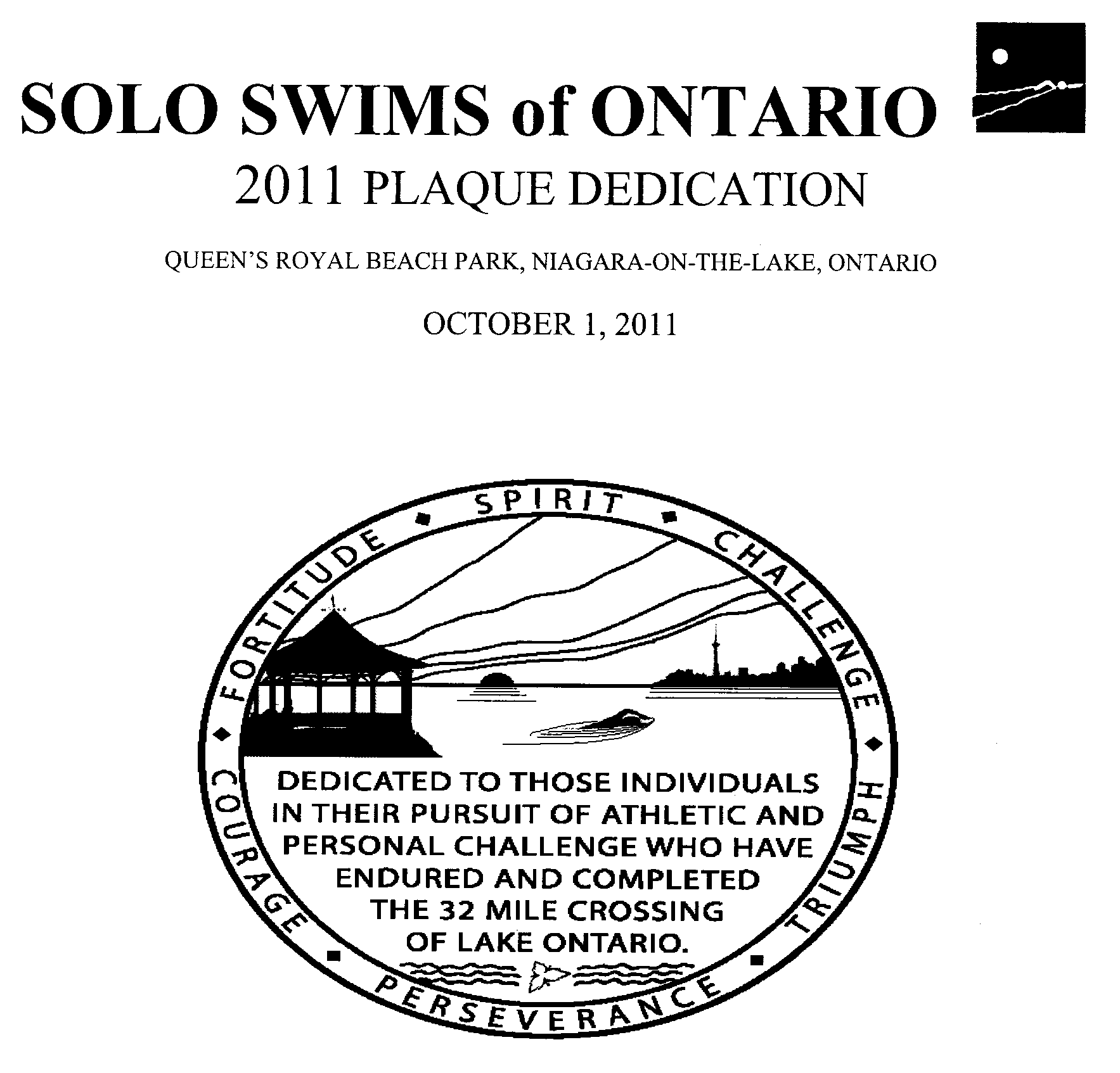 On 1st October 2011, a NEW ENLARGED PLAQUE was unveiled at Queen's Royal Beach Park at Niagara-on-the-Lake. |