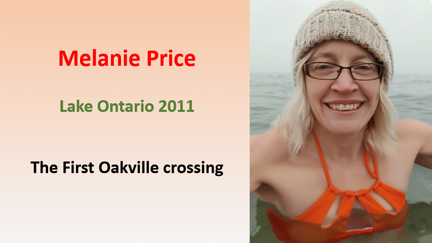 On 12th August 2011, at age 38 years and 295 days, Melanie became the FIRST PERSON to complete a Lake Ontario crossing on the route between Port Dalhousie and Oakville - a 41 km swim.