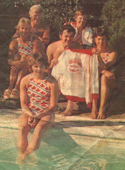 money to the York Lung Association. Upon their arrival at Ontario Place, the family was hurried to the Grandstand where the swimmers were awarded a gift by the York Lung Association. Ted Roach