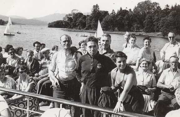 Seen in the left photograph John appears in track-suit in the mid-1950s at the south end of Lake Windermere. Behind John, on his left, is his father Fred, and to John's left is his first wife Mary.