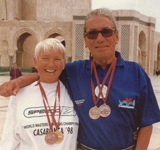 about their joint performances - he had moved into the 75-79 age-group and placed 5th in the 3 km and 400 m IM, 8th in the