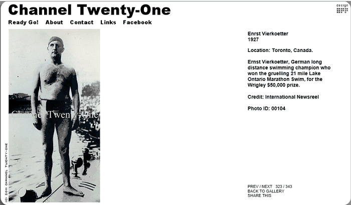 In 1928, the CNE race was shortened to 15 miles; however, the water was reported as extremely cold and none of the 199 entrants finished the course. The prize money was distributed to those unsuccessful contestants making the best showing. George Michel of France was accorded the winner, having completed 12.125 miles in 11 hours 12 minutes 57 seconds. Ernst Vierkoetter was second having covered 12 miles at a much faster pace in 7:39:37. Louis Mathias of Long Island, NY, was third covering 8.375 miles in 7:05:00. Eleven other swimmers covered 5 miles or more, with William Erickson of New York taking fourth place with a distance of 7.5 miles in a time of 4:58:42. Interestingly, Ernst was listed as Germany for that 1928 race; however, the next year his name appeared on the programme with "Toronto" as his home - he, again, took second place in the race that was 15 miles with a time of 8:18:31:39.3, with Ed. Keating from New York taking first place in 8:18:13.1 - the times being recorded to 0.1 seconds that year. The following year, 1930, is the last time his name appears among the finishers when he took fifth place in 8:30:10.4, for the 15 mile race, behind the winner, Marvin Nelson of Fort Dodge, Iowa, who finished in 7:43:36.2.