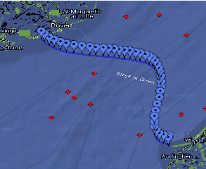 His pilots were Marilyn Critchley and Simon Ellis on "High Hopes" with Graham Proctor as the official Observer from the CS&PF. The Merman image was created by Jodi DiLascio to honour Loren's Channel crossing. Loren has his own comprehensive, ilustrated, report on the swim and interested readers will find it well worth reading. |