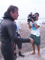 - In the photo on the right, Jim Dreyer sports the full wet suit (with hood) used for his attempt to cross Lake Superior in 2002. Jim's